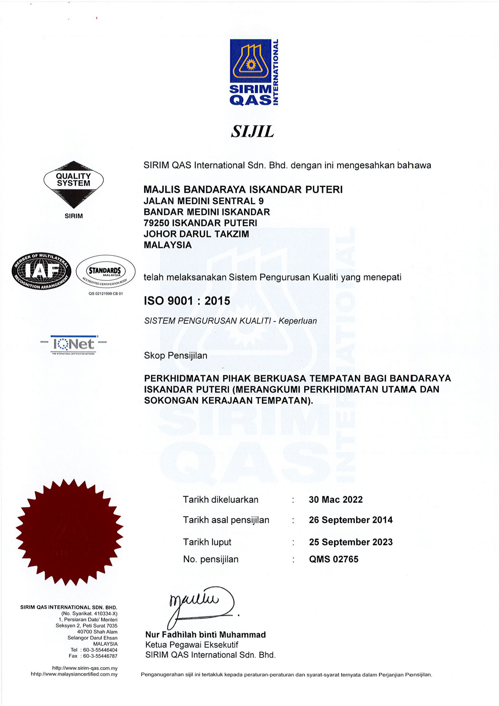 PENSIJILAN ISO 9001:2015
